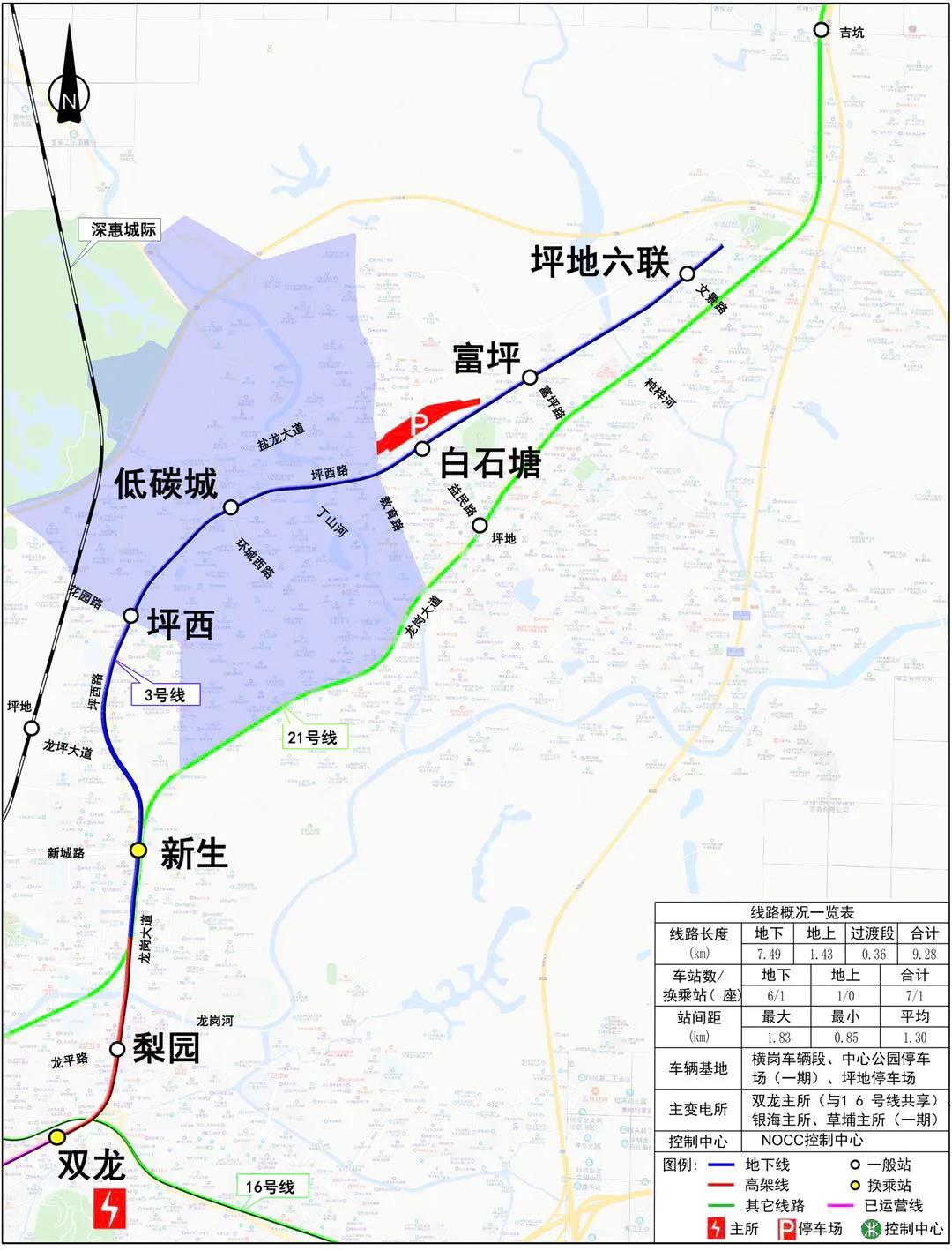 不仅如此,在与坪地接壤的惠阳新圩镇还预留了深圳地铁21号线线位,这是连接南山前海至龙岗坪地的快速地铁线。